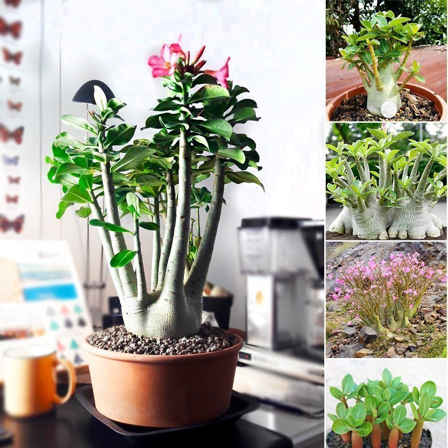 Adenium arabicum - замечательное суккулентное растение с гротескно раздутым стволом - каудексом, напоминающим миниатюрный баобаб. Adenium arabicum внешне похож на Adenium obesum, но для него характерен более массивный, приземистый и толстый ствол без особых различий между стволом и ветвями. Этот вид лиственного суккулента уроженец Йемена и Саудовской Аравии, был вынужден адаптироваться к суровым условиям горячих, сухих пустынь с ограниченным количеством воды и питательных веществ. Кроме того, в отличие от адениума обесума, адениум арабикум является идеальной основой для бонсай.