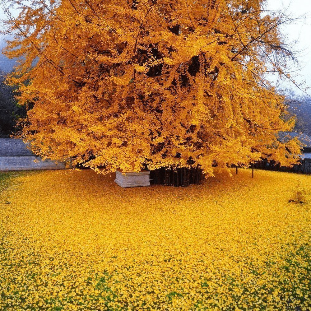 В начале 18 века гинкго как «храмовое дерево» завезли в Европу из китайских дворцовых садов. Дерево листопадное, со стройной кроной, одно- или многоствольное. Вырастает на родине до 30 м в высоту. Ветви отходят от ствола почти под прямым углом. Кора серая с продольными складками, морщинистая. Ни одно из современных голосеменных растений не имеет столь декоративных листьев. Листья кожистые, с частыми параллельными жилками, вееровидные, рассеченные на две лопасти, собраны в пучки на укороченных побегах, благодаря чему зимой ветки приобретают оригинальный вид. Осенью листья окрашиваются привлекательный золотисто-желтый цвет. Растение двудомное. Хорошо растет на садовой почве на солнце или в полутени. Гинкго отлично приживается, нетребователен к почвам, морозостоек (до - 30° С), легко размножается семенами. Предпочитает хорошо дренированную почву. Поливать нужно каждые 2-4 недели. Молодые деревца желательно поддерживать колышками. Обрезка не требуется, если вы не хотите, чтобы дерево оставалось маленьким. Если же решите обрезать, то делайте это весной.