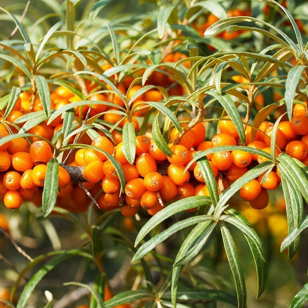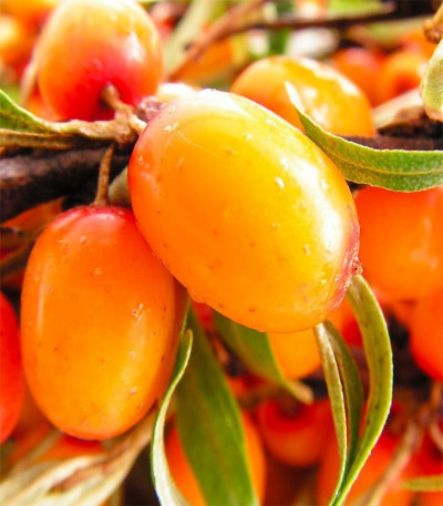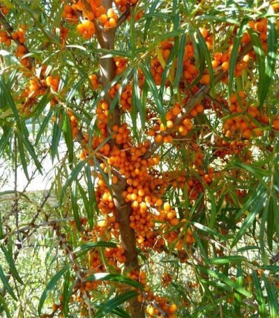 Облепиха - один из самых необычных кустарников, эта красавица имеет листья, похожие на ивовые, плотно прилегающие к ветвям. Встречаются как мужские, так и женские растения, но только женские растения дают удивительные сочные золотистые ягоды, являющиеся отличным источником витаминов. Этот колючий кустарник, обладает высокой лечебной и питательной ценностью. По этой причине облепиху также называют супер ягодой. Плоды появляются на 3-4 год жизни. В высоту может вырасти до 6 метров, распространен в Центральной Азии. Растение размножается как корневищами так и семенами.