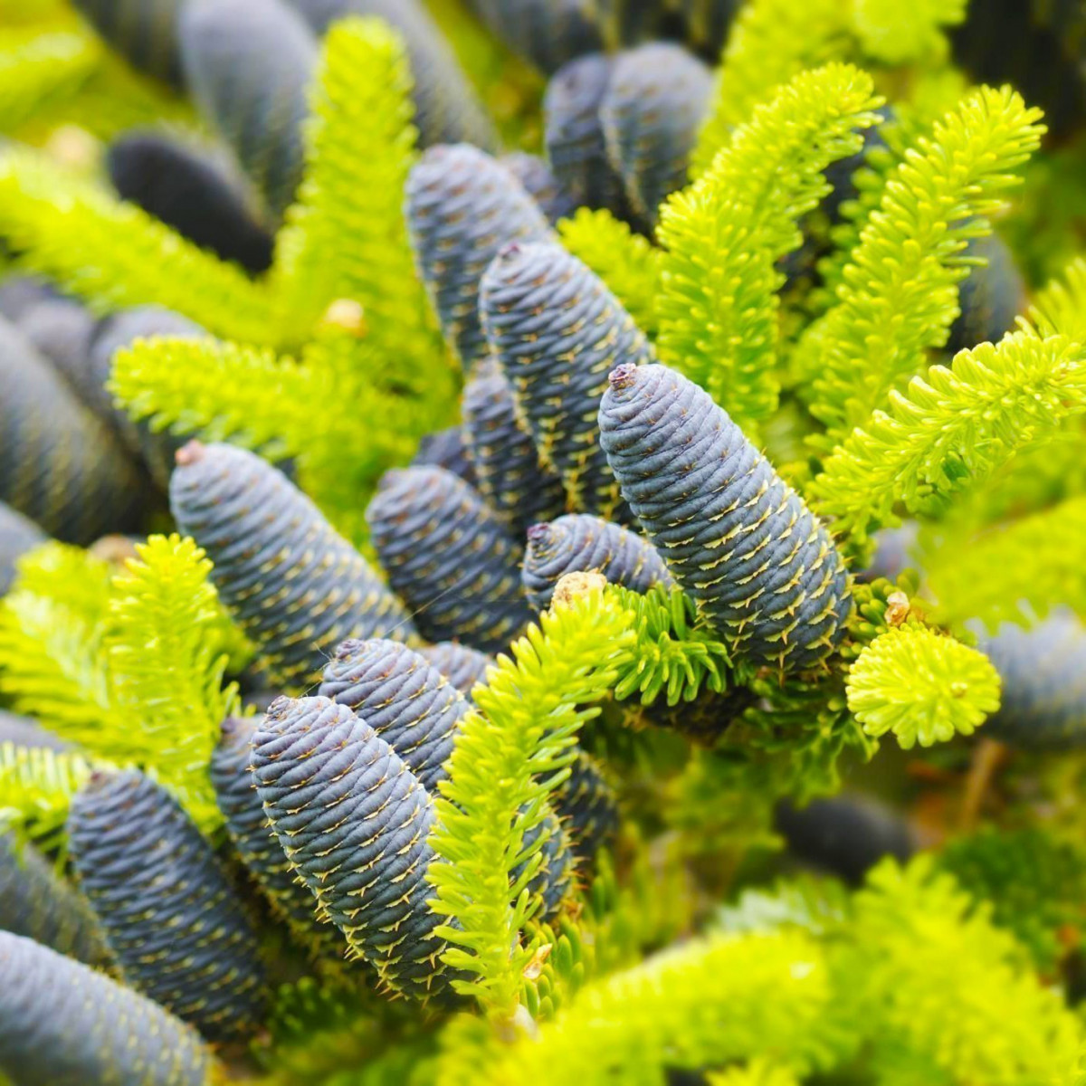 Пихта корейская – вечнозелёное дерево с густой, широкой, конусовидной кроной и красивыми декоративными шишками. Молодые побеги чаще всего светло-зеленые, с возрастом темнеют. Кора у саженцев гладкая, светло-серого цвета, у взрослых деревьев кора становится красно-коричневой. Пихта корейская, высота которой достигает 15 м, имеет жесткую хвою насыщенного зеленого цвета.