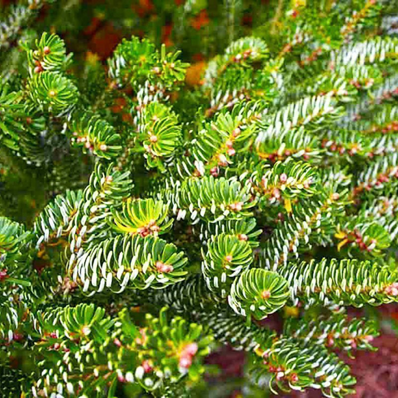 Пихта корейская – вечнозелёное дерево с густой, широкой, конусовидной кроной и красивыми декоративными шишками. Молодые побеги чаще всего светло-зеленые, с возрастом темнеют. Кора у саженцев гладкая, светло-серого цвета, у взрослых деревьев кора становится красно-коричневой. Пихта корейская, высота