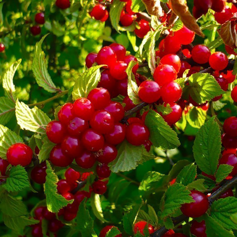 Благодаря тому, что это кустарник высотой до 2,5 м урожай войлочной вишни очень легко собирать. Плоды по размеру мельче чем у вишни обыкновенной, но слаще по вкусу.